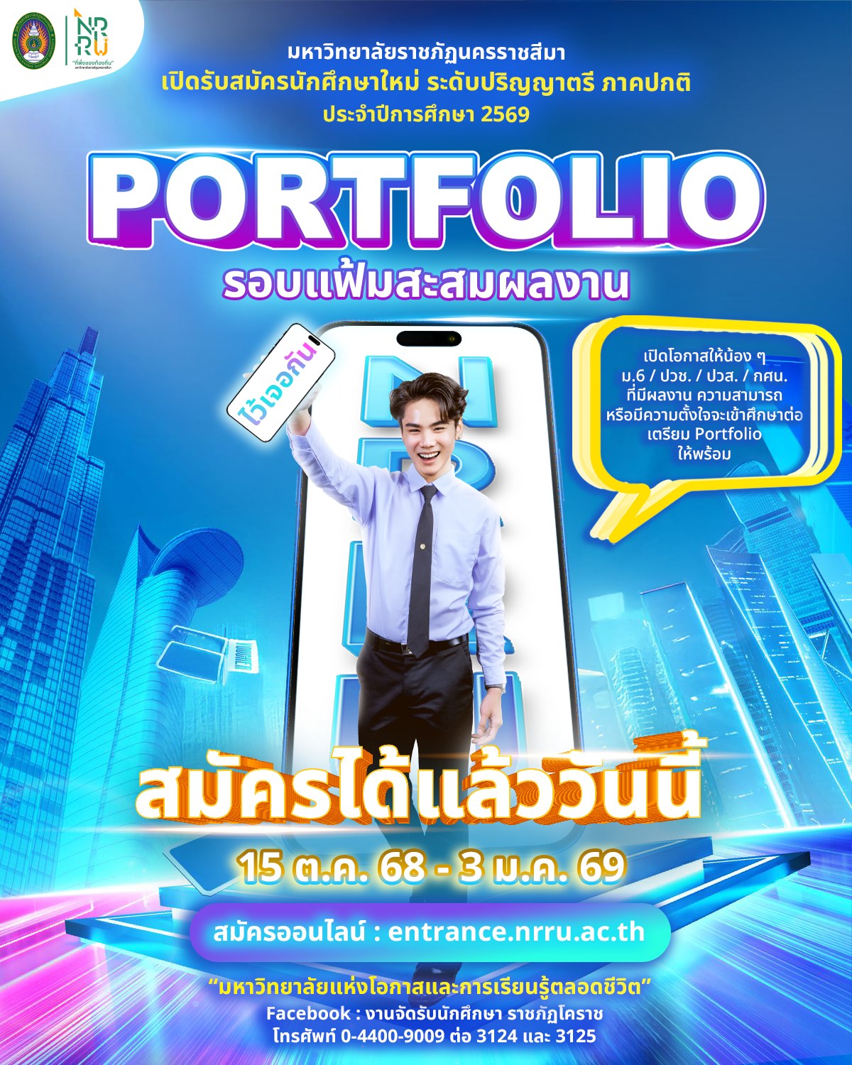 📌 ประกาศรายชื่อผู้มีสิทธิ์เข้าสัมภาษณ์ วันที่ 16 ม.ค. 69 ที่เว็บไซต์ entrance.nrru.ac.th หลังเวลา 18.00 น.