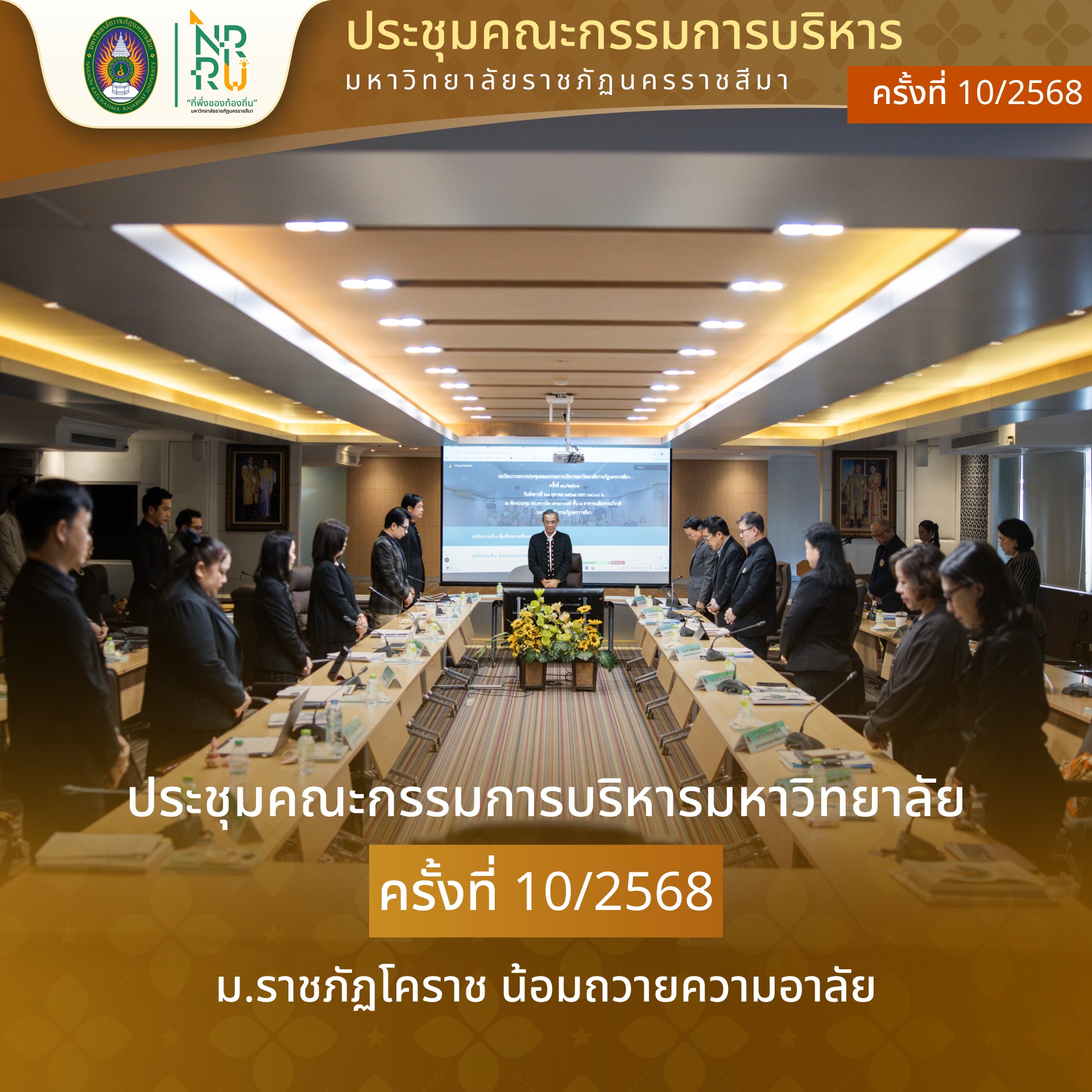 วันที่ 28 ตุลาคม 2568 มหาวิทยาลัยราชภัฏนครราชสีมา จัดการประชุมคณะกรรมการบริหารมหาวิทยาลัย ครั้งที่ 10/2568 ซึ่งก่อนเริ่มการประชุมได้มีการยืนสงบนิ่งเพื่อน้อมถวายความอาลัยแด่ สมเด็จพระนางเจ้าสิริกิติ์ พระบรมราชินีนาถ พระบรมราชชนนีพันปีหลวง ทั้งนี้ อธิการบดีได้กล่าวถึงพระราชกรณียกิจและพระมหากรุณาธิคุณที่พระองค์ทรงมีต่อมหาวิทยาลัยราชภัฏนครราชสีมาเสมอมา โดยเฉพาะเมื่อครั้งที่ พระบาทสมเด็จพระปรมินทรมหาภูมิพลอดุลยเดช และสมเด็จพระนางเจ้าสิริกิติ์ พระบรมราชินีนาถ เสด็จพระราชดำเนินรับฟังคำกราบบังคมทูลรายงานความก้าวหน้าของการฝึกหัดครูไทยของวิทยาลัยครูนครราชสีมา เมื่อวันที่ 20 กุมภาพันธ์ 2507 และทอดพระเนตรกิจการวิทยาลัยครูนครราชสีมาและนิทรรศการด้านวิชาการของนักศึกษาด้วยความสนพระราชหฤทัยยิ่ง นับเป็นพระมหากรุณาธิคุณอันหาที่สุดมิได้ พร้อมกันนี้ อธิการบดีได้สั่งการและเน้นย้ำให้มีการปรับรูปแบบการจัดกิจกรรมในห้วงเวลาของการไว้ทุกข์ให้มีความสำรวมและเหมาะสม