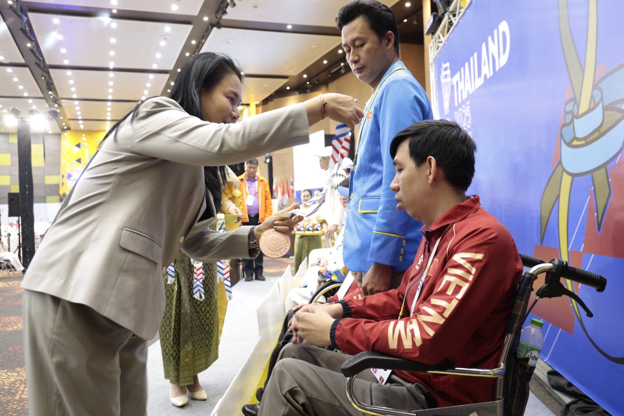 ในโอกาสนี้ คณะผู้บริหารยังได้ร่วมพิธีมอบเหรียญรางวัลให้แก่เจ้าของเหรียญทองและผู้ชนะในประเภทต่าง ๆ เพื่อเชิดชูความสามารถและความมุ่งมั่นของนักกีฬาผู้พิการที่สร้างชื่อเสียงให้แก่ประเทศ