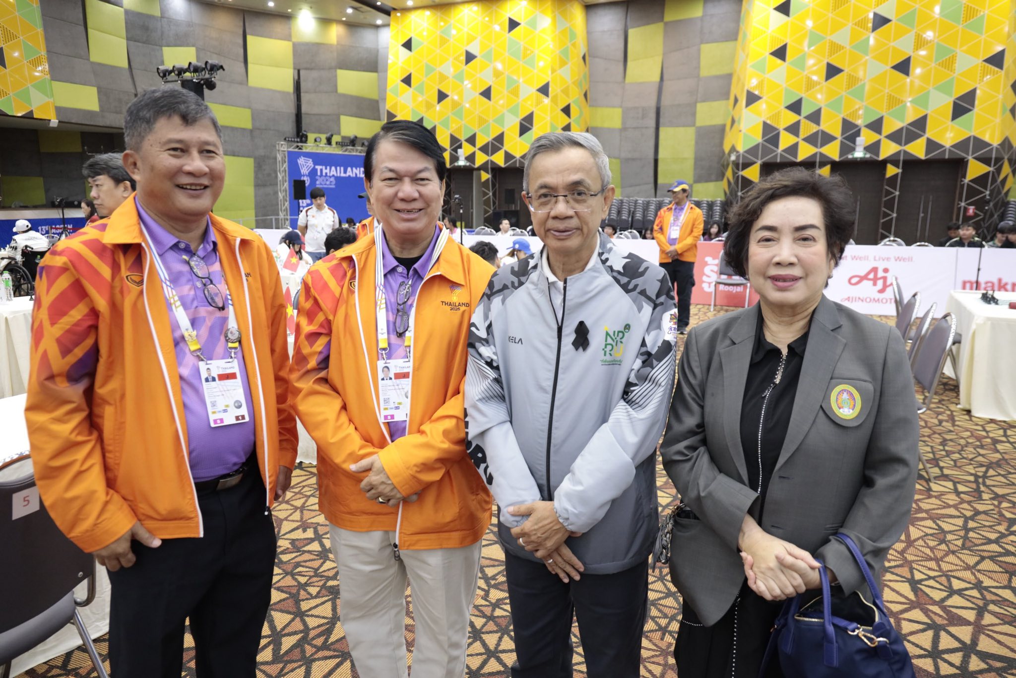 รองศาสตราจารย์ ดร.อดิศร เนาวนนท์ อธิการบดีมหาวิทยาลัยราชภัฏนครราชสีมา พร้อมด้วยคณะผู้บริหาร และ ผู้ช่วยศาสตราจารย์ ดร.สุดาใจ โล่ห์วนิชชัย ประธานคณะกรรมการส่งเสริมกิจการมหาวิทยาลัยฯ ลงพื้นที่เยี่ยมชมการจัดการแข่งขัน กีฬาหมากรุก (Chess) ณ หอประชุมราชภัฏรังสฤษฏ์ เพื่อให้กำลังใจนักกีฬาจากประเทศไทยและประเทศสมาชิกอาเซียน รวมถึงเจ้าหน้าที่ปฏิบัติงานและอาสาสมัครทุกคน