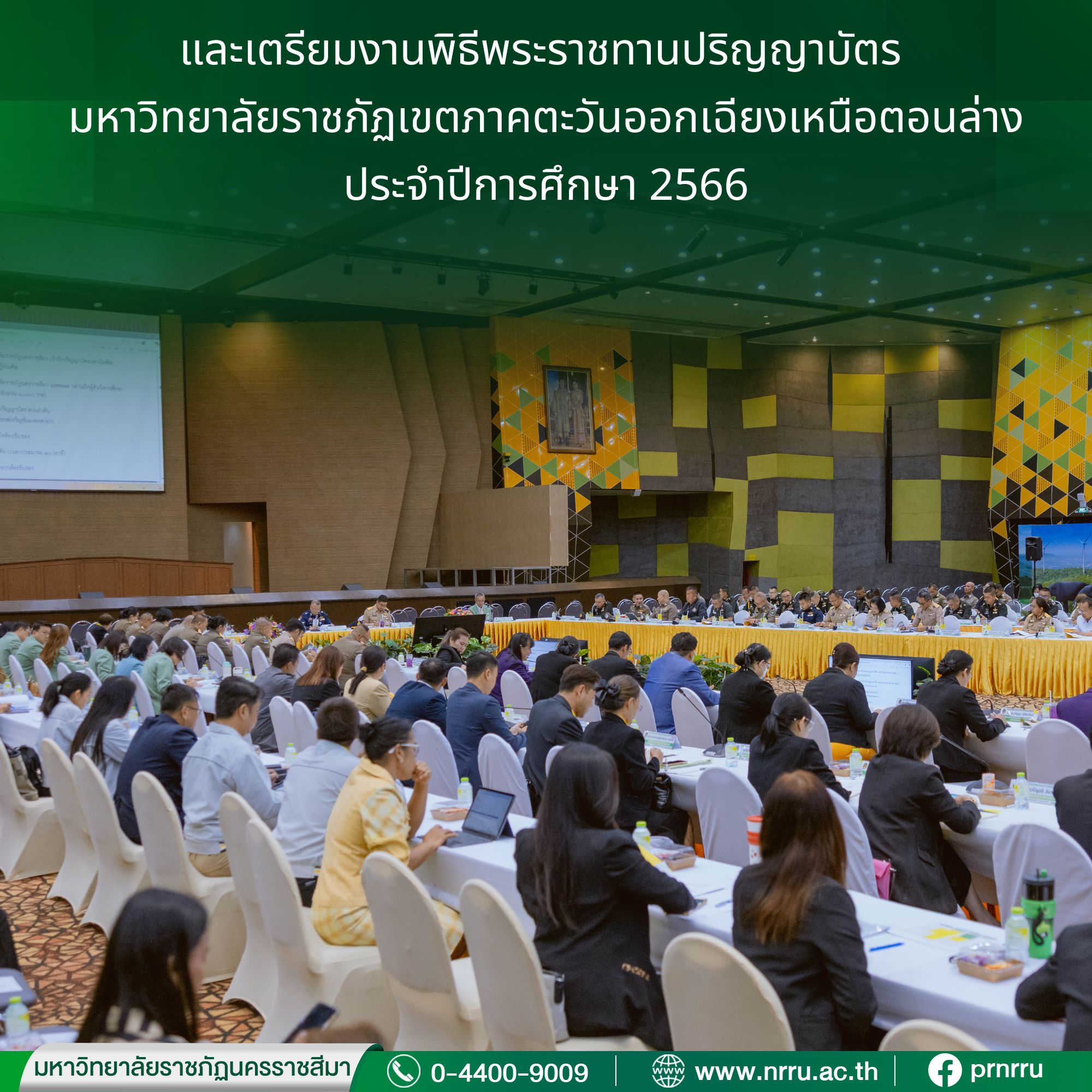 ทั้งนี้ ในการประชุมได้มีการตรวจเยี่ยมพื้นที่เตรียมการรับผู้แทนพระองค์และหารือแนวทางการเตรียมงานพิธีพระราชทานปริญญาบัตร มหาวิทยาลัยราชภัฏเขตภาคตะวันออกเฉียงเหนือตอนล่าง ประจำปีการศึกษา 2566 ซึ่งจะจัดขึ้น ณ หอประชุมราชภัฏรังสฤษฏ์ มหาวิทยาลัยราชภัฏนครราชสีมา โดย รศ.ดร.อดิศร เนาวนนท์ อธิการบดีมหาวิทยาลัยราชภัฏนครราชสีมา ได้กล่าวในที่ประชุมว่ามหาวิทยาลัยรู้สึกเป็นเกียรติอย่างยิ่งที่ได้เป็นเจ้าภาพในการจัดงานพิธีพระราชทานปริญญาบัตรในครั้งนี้ ทางมหาวิทยาลัยจะเตรียมการจัดงานอย่างสุดความสามารถ พร้อมทั้งขอบคุณหน่วยงานต่าง ๆ ที่มีส่วนร่วมในการดำเนินงาน และเชิญชวนชาวจังหวัดนครราชสีมาร่วมเป็นเจ้าบ้านต้อนรับพี่น้องราชภัฏจากจังหวัดต่าง ๆ ในภาคตะวันออกเฉียงเหนือ ร่วมแสดงความยินดีและภาคภูมิใจในงานครั้งสำคัญนี้ร่วมกัน