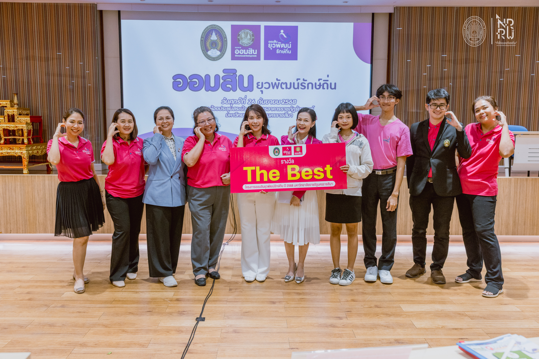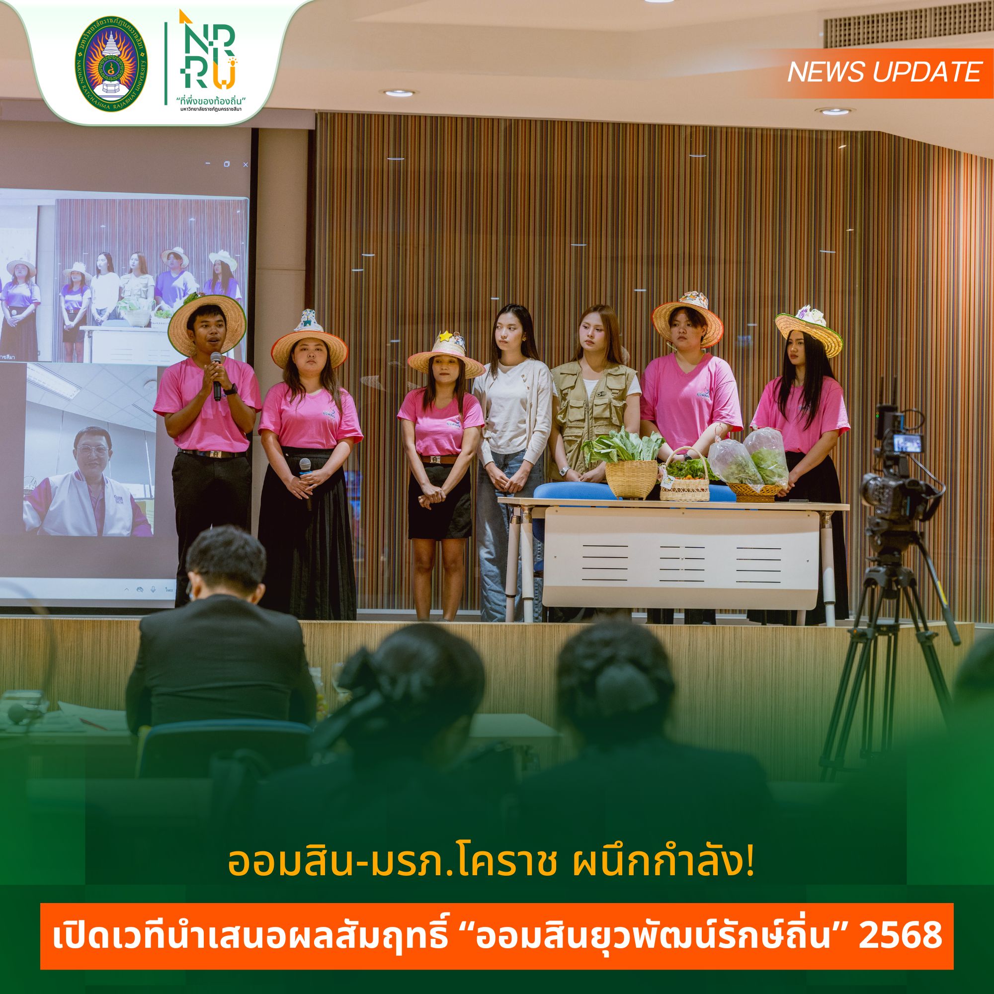 มหาวิทยาลัยราชภัฏนครราชสีมา โดย กองกิจการพิเศษ สำนักงานอธิการบดี ร่วมกับ ธนาคารออมสิน จัดกิจกรรมนำเสนอผลสัมฤทธิ์โครงการออมสินยุวพัฒน์รักษ์ถิ่น ประจำปี 2568 โดยได้รับเกียรติจาก ผศ.ดร.อานรรต ใจสำราญ รองอธิการบดีฝ่ายกิจการสภามหาวิทยาลัย กิจการพิเศษและวิเทศสัมพันธ์ เป็นประธานเปิดโครงการ พร้อมด้วย ดร.อภิรดี เนติรังษีวัชรา ผู้อำนวยการกองกิจการพิเศษ กล่าวรายงาน โดยมี นายธนวัฒน์ ขันธวิจิตร์ ผู้ช่วยผู้อำนวยการฝ่ายพัฒนาธุรกิจผู้ประกอบการรายย่อยและองค์กรชุมชน หน่วยพัฒนาลูกค้าองค์กรชุมชน 1 ธนาคารออมสิน สำนักงานใหญ่ ให้ข้อมูลและแนวทางการดำเนินงาน หลังจากนั้นเป็นการนำเสนอผลสัมฤทธิ์โครงการของนักศึกษา จำนวน 5 ทีม การให้ข้อเสนอแนะของกรรมการ และการประกาศรางวัล ดังนี้