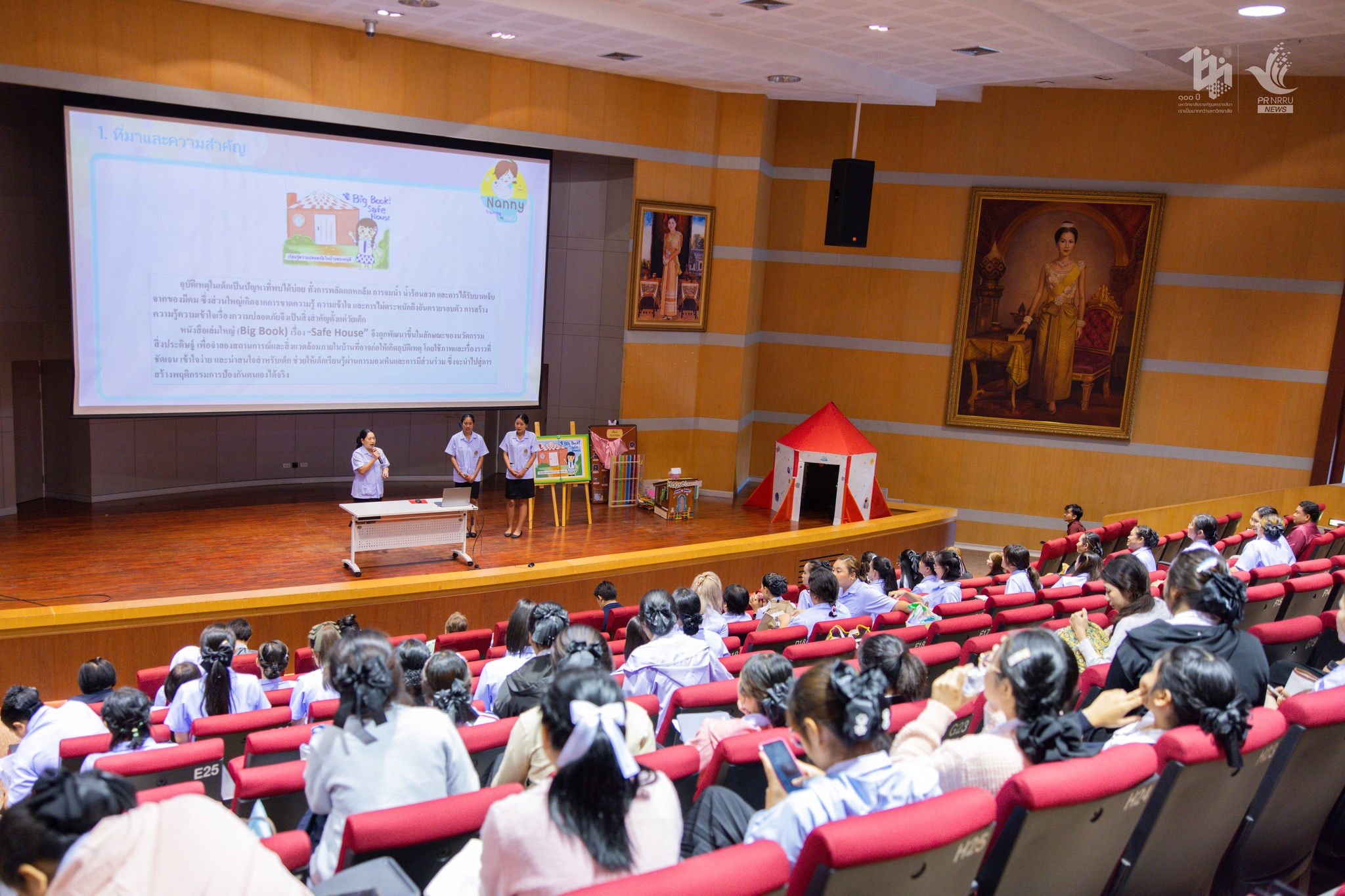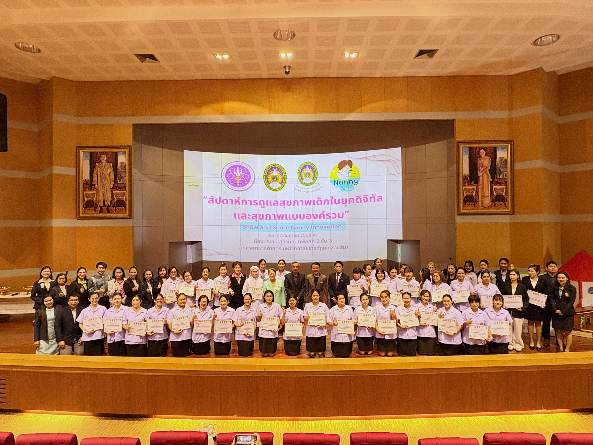 วันนี้ (27 กันยายน 2568) คณะพยาบาลศาสตร์ มหาวิทยาลัยราชภัฏนครราชสีมา จัดกิจกรรมพิธีมอบประกาศนียบัตรผู้ดูแลเด็กและครอบครัวในยุคดิจิทัลเพื่อรักษาสมดุลสุขภาพแบบองค์รวม รุ่นที่ 1 และกิจกรรม Show and Share Nanny Innovation ณ ห้องประชุมสุวัจน์ ลิปตพัลลภ 2 (อาคาร 31 ชั้น 3) โดยได้รับเกียรติจาก รองศาสตราจารย์ ดร.อดิศร เนาวนนท์ อธิการบดีมหาวิทยาลัยราชภัฏนครราชสีมา เป็นประธานในพิธีและมอบประกาศนียบัตร พิธีดังกล่าวจัดขึ้นเพื่อแสดงความยินดีและมอบประกาศนียบัตรแก่ผู้สำเร็จการอบรมหลักสูตรประกาศนียบัตรผู้ดูแลเด็กและครอบครัวในยุคดิจิทัลฯ รุ่นที่ 1 จำนวน 40 คน ซึ่งเป็นโครงการผลิตบัณฑิตพันธุ์ใหม่และกำลังคนที่มีสมรรถนะเพื่อตอบโจทย์ภาคการผลิตตามนโยบายการปฏิรูปการอุดมศึกษาไทยปี พ.ศ. 2568 และให้ทิศทางการดำเนินงานโดย ผู้ช่วยศาสตราจารย์ ดร.รัฐกรณ์ คิดการ รองอธิการบดีฝ่ายวิชาการ การวิจัย และนวัตกรรม ผู้ช่วยศาสตราจารย์ ดร.สุรีย์ ธรรมิกบวร คณบดีคณะพยาบาลศาสตร์ กล่าวรายงานว่า หลักสูตรนี้ใช้ระยะเวลาอบรมทั้งสิ้น 4 เดือน รวม 285 ชั่วโมง แบ่งเป็นภาคทฤษฎี 60 ชั่วโมง และภาคปฏิบัติ 225 ชั่วโมง โดยมีวัตถุประสงค์เพื่อผลิตบุคลากรที่มีทักษะในการดูแลเด็กในสถานพยาบาล โรงเรียน ศูนย์พัฒนาเด็ก และที่บ้านได้อย่างถูกต้องตามหลักวิชาการ สามารถใช้เทคโนโลยีที่ทันสมัยเพื่อส่งเสริมพัฒนาการของเด็ก และมีทักษะการสื่อสารที่มีประสิทธิภาพ การอบรมที่เข้มข้นนี้มีความสำคัญอย่างยิ่ง และแสดงให้เห็นถึงความสำเร็จตามเป้าหมายของผู้เข้าร่วมทุกคน นอกจากนี้ยังมีการจัดกิจกรรม Show and Share Nanny Innovation ซึ่งเปิดโอกาสให้ผู้สำเร็จการอบรมได้นำเสนอผลงานและนวัตกรรมที่สร้างสรรค์ขึ้นจากความรู้ที่ได้รับ เพื่อนำไปใช้ประโยชน์ในการดูแลเด็กและครอบครัวต่อไป โดยมีการนำเสนอผลงานทั้งสิ้น 9 กลุ่ม ภายในงานยังได้รับเกียรติจากวิทยากรพิเศษ คุณดุสิต อุปไชย พี่เลี้ยงของบุตรคุณกายและคุณฮารุ สุประกอบ ยูทูบเบอร์ชื่อดัง บรรยายในหัวข้อ “พี่เลี้ยงเด็กยุคใหม่ในอุดมคติ” พร้อมทั้งมีการมอบเกียรติบัตรเพื่อแสดงความขอบคุณแก่หน่วยงานแหล่งฝึกที่ให้ความร่วมมือในการจัดการเรียนการสอนอีกด้วย