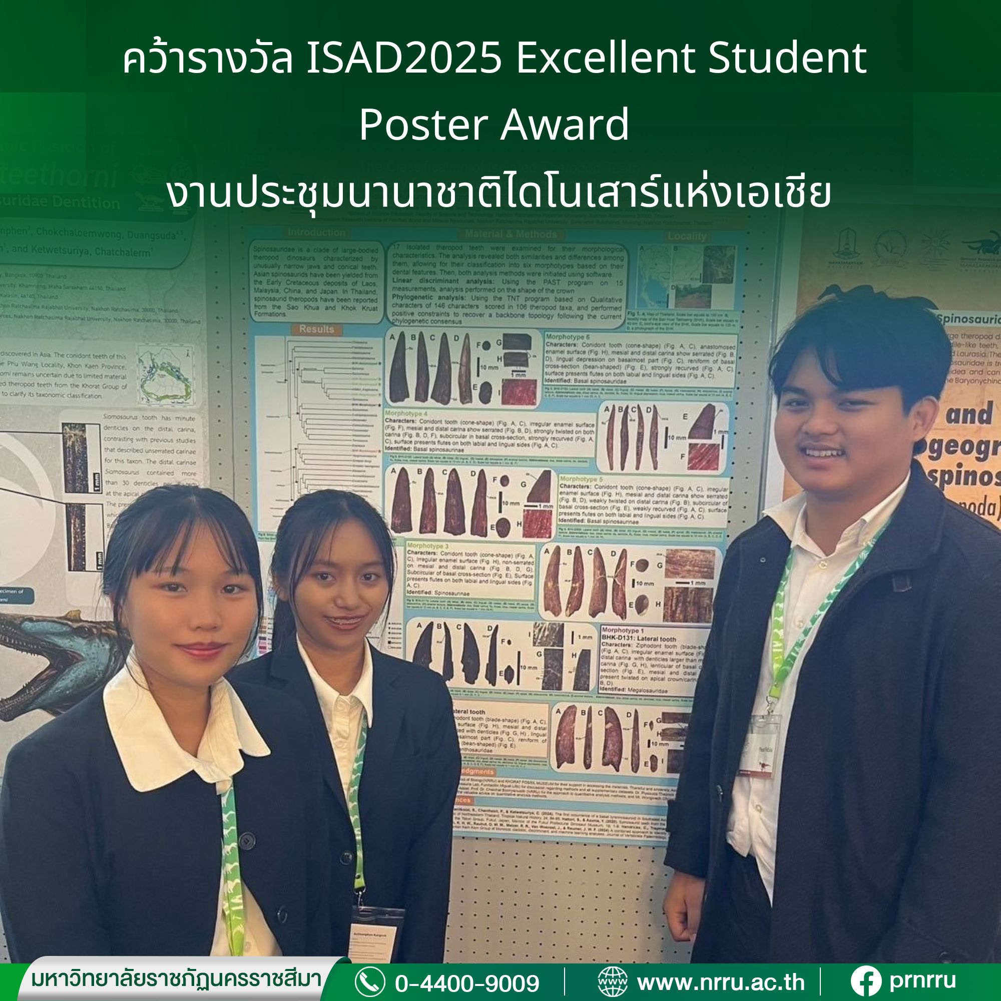 มหาวิทยาลัยราชภัฏนครราชสีมา ขอแสดงความยินดีกับ นายพิสิษฐ์ ปิดตะคุ นักศึกษาสาขาวิชาชีววิทยา ชั้นปีที่ 3 คณะวิทยาศาสตร์และเทคโนโลยี ในโอกาสที่ได้รับรางวัล ISAD2025 Excellent Student Poster Award ในงานประชุมวิชาการนานาชาติไดโนเสาร์แห่งเอเชีย ครั้งที่ 6 (The 6th International Symposium on Asian Dinosaurs in Japan 2025) ณ มหาวิทยาลัยจังหวัดฟูกุอิ และพิพิธภัณฑ์ไดโนเสาร์จังหวัดฟูกุอิ จังหวัดฟูกุอิ ประเทศญี่ปุ่น ที่จัดขึ้นในช่วงระหว่างวันที่ 26 – 30 กันยายน 2568 ในหัวข้อเรื่อง “The Classification of Isolated Theropod Teeth from Sao Khua Formation (Early Cretaceous), Thailand” โดยมี ผู้ช่วยศาสตราจารย์ ดร.ดวงสุดา โชคเฉลิมวงศ์ เป็นอาจารย์ที่ปรึกษาโครงการวิจัย