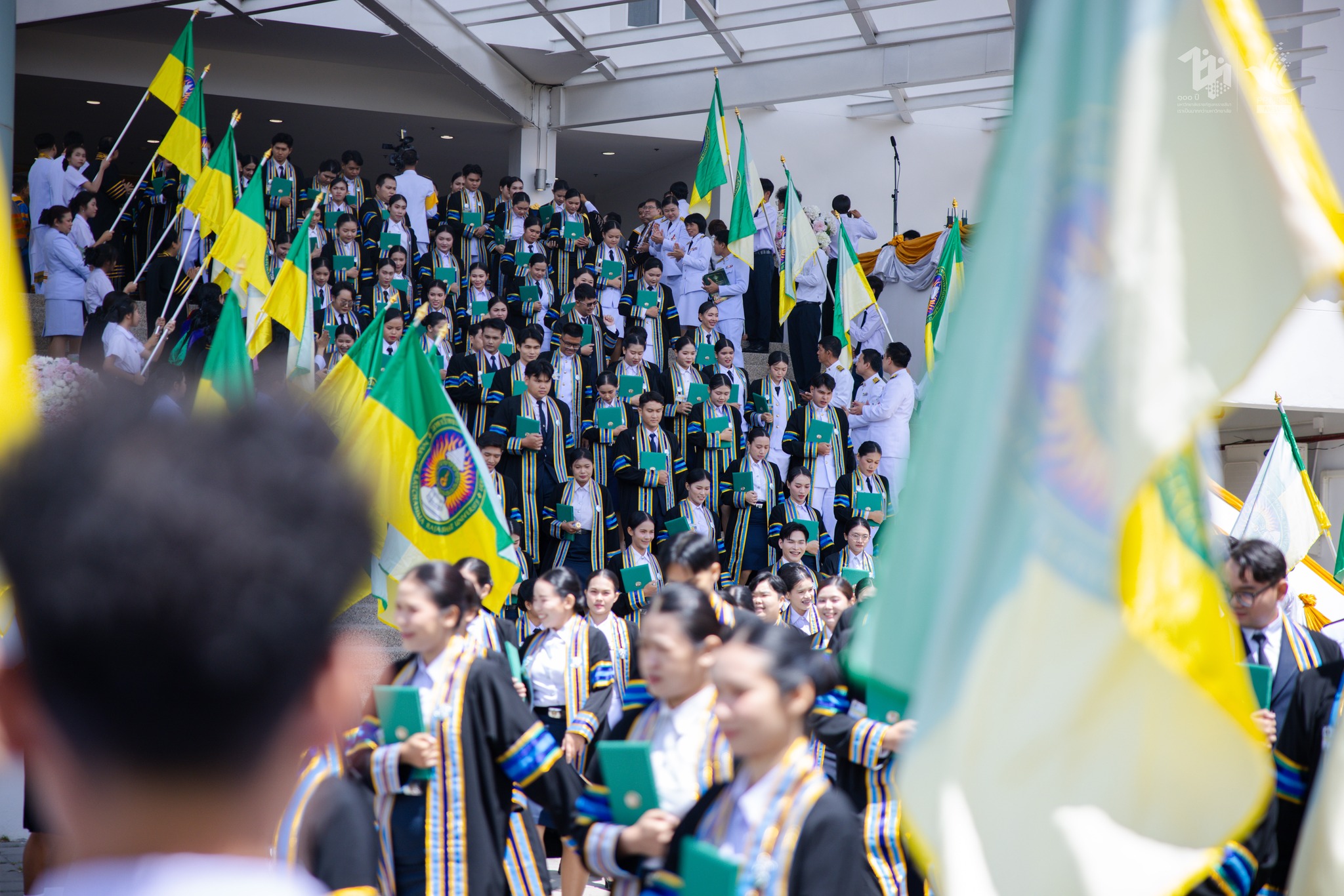ในการนี้ นายสุวัจน์ ลิปตพัลลภ นายกสภามหาวิทยาลัยราชภัฏนครราชสีมา ได้กล่าวรายงานผลการดำเนินงานมหาวิทยาลัยราชภัฏนครราชสีมา ที่ได้น้อมนำพระบรมราโชบายด้านการศึกษา เพื่อสร้างคุณลักษณะ 4 ประการให้กับผู้เรียน ด้วยสำนึกในพระมหากรุณาธิคุณของพระบาทสมเด็จพระเจ้าอยู่หัว จึงได้น้อมนำแนวทางการดำเนินงาน สู่การปฏิบัติและมีการพัฒนาอย่างต่อเนื่อง โดยในปีงบประมาณ พ.ศ.2568 ได้ขับเคลื่อนงานพัฒนาท้องถิ่นครอบคลุมทั้งมิติเศรษฐกิจ สังคม การศึกษาและสิ่งแวดล้อมมีการสร้างชุมชนต้นแบบด้านการท่องเที่ยว การดูแลสุขภาพ และการบริหารจัดการทรัพยากรธรรมชาติและสิ่งแวดล้อม รวมถึงการพัฒนาต่อยอดอัตลักษณ์ชุมชนสู่ Soft Power จากนั้นเป็นการมอบปริญญาปริญญาดุษฎีบัณฑิตกิตติมศักดิ์ ให้กับผู้ช่วยศาสตราจารย์ ประเทือง จินตสกุล ต่อด้วย รศ.ดร.อดิศร เนาวนนท์ อธิการบดีมหาวิทยาลัยราชภัฏนครราชสีมา กล่าวรายงานผู้สำเร็จการศึกษา จากมหาวิทยาลัยราชภัฏนครราชสีมา รวม 1,623 คน เข้ารับพระราชทานปริญญาบัตร