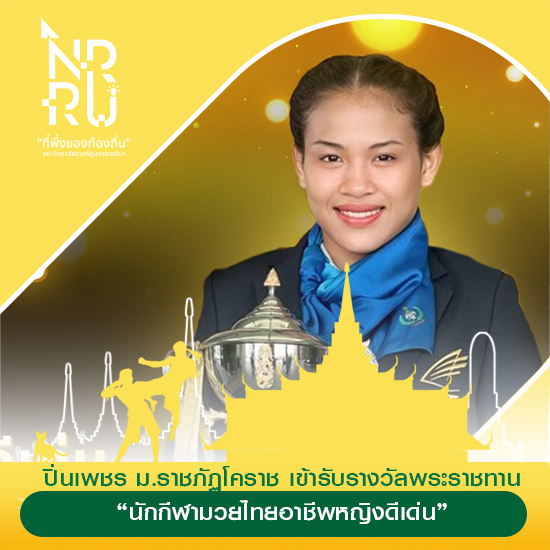 ปิ่นเพชร ม.ราชภัฏโคราช เข้ารับรางวัลพระราชทาน “นักกีฬามวยไทยอาชีพหญิงดีเด่น” ณ ศาลาสหทัยสมาคม ในพระบรมมหาราชวัง